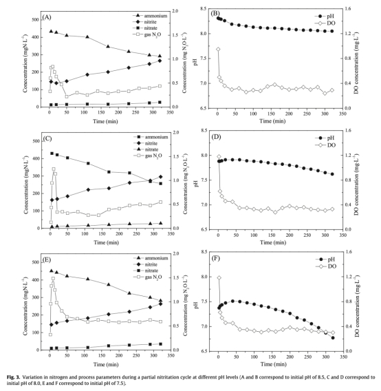 3 pH控制可作為關(guān)鍵操作參數(shù),通過維持較高pH(如8.0以上)來最小化N2O排放,同時(shí)保持部分亞硝化效率。