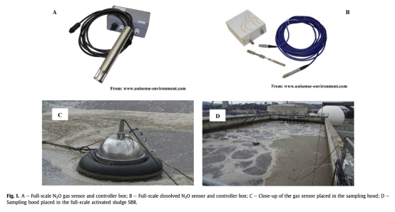 研究思路包括首先對(duì)全規(guī)模N2O氣體傳感器進(jìn)行實(shí)驗(yàn)室校準(zhǔn),測(cè)試線性范圍、溫度依賴性、信號(hào)飽和和漂移。然后,將傳感器部署于全規(guī)模SBR污水處理廠,使用采樣罩收集氣體,同步使用商業(yè)氣體分析儀和溶解N2O微傳感器進(jìn)行比對(duì)監(jiān)測(cè)。數(shù)據(jù)采集包括氣相和液相N2O濃度、溫度、溶解氧等參數(shù)。基于溶解N2O測(cè)量值,應(yīng)用五種不同方法估算KLa(質(zhì)量傳輸系數(shù)),并計(jì)算N2O排放量,與直接氣體測(cè)量值比較,驗(yàn)證模型準(zhǔn)確性。整個(gè)實(shí)驗(yàn)持續(xù)4天,覆蓋好氧和缺氧階段。