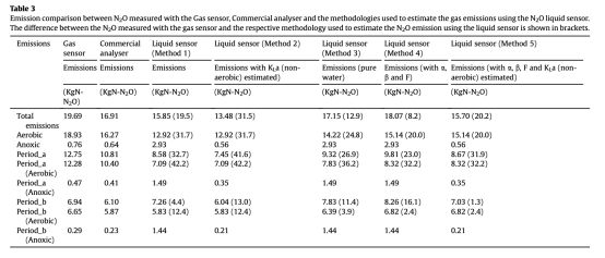 4 數(shù)據(jù)來自表3和圖4:測(cè)量了基于溶解N2O傳感器數(shù)據(jù)使用五種方法估算的排放量,與方法5(結(jié)合OTR和動(dòng)態(tài)KLa估算)的預(yù)測(cè)值與氣體傳感器測(cè)量值吻合度達(dá)98.7%。研究意義是驗(yàn)證了溶解N2O測(cè)量可可靠估算氣體排放,簡(jiǎn)化監(jiān)測(cè)設(shè)置;好氧階段貢獻(xiàn)總排放的96.1%,強(qiáng)調(diào)好氧過程的主導(dǎo)作用。