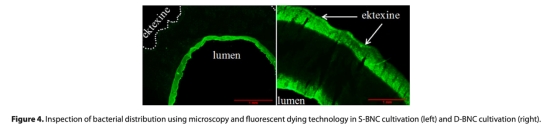 3 細菌分布:數據來自圖4,通過熒光顯微鏡觀察細菌在BNC管中的聚集。研究意義在于驗證細菌主要在空氣-液體界面聚集,影響BNC層狀結構形成,D-BNC生物反應器有兩個細菌區,導致更均勻的管壁。