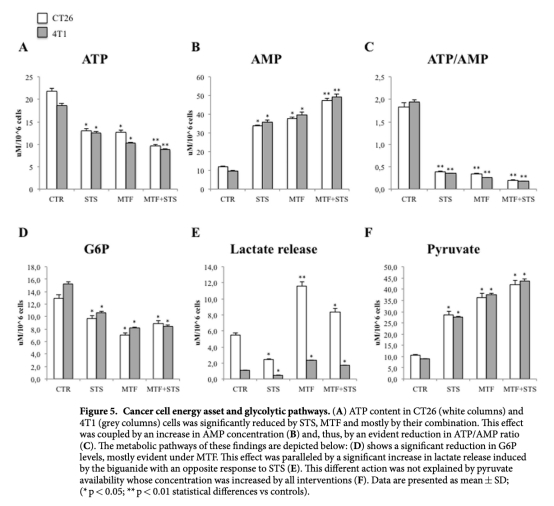 4 能量代謝數(shù)據(jù)(ATP、AMP、ATP/AMP比率):來(lái)自圖5A、5B、5C。研究意義是顯示聯(lián)合治療導(dǎo)致嚴(yán)重ATP耗竭,表明能量危機(jī)是抑制癌癥生長(zhǎng)的關(guān)鍵。