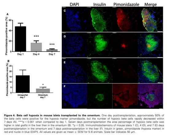 移植到大網膜的小鼠和人類胰島的血管化和氧合快速恢復可能有助于其優于門靜脈內移植胰島的功能