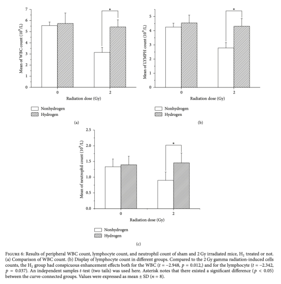 2 H2通過減輕焦慮和抑郁樣行為、降低染色體畸變、改善血細(xì)胞計(jì)數(shù)、減少精子異常和增強(qiáng)淋巴細(xì)胞活性,顯示出輻射防護(hù)作用。