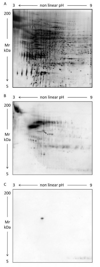 6 測量了外泌體表面蛋白質的表達,通過生物素標記和二維電泳,檢測到ATP合酶β亞基(ATP5B)位于表面(來自圖7)。研究意義是確認呼吸鏈蛋白在外泌體表面功能性表達,支持其自主進行有氧呼吸的機制。