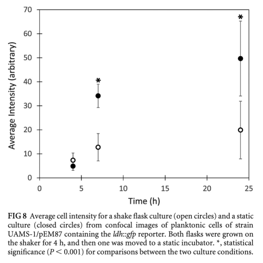研究思路是使用金黃色葡萄球菌菌株AH2547和UAMS-1,制備瓊脂糖凝膠包埋的細菌模型,將凝膠填充到玻璃毛細管中,在稀釋的TSB培養基中孵育長達30小時。通過活菌計數、共聚焦顯微鏡、氧微電極測量和報告基因表達分析,評估細菌生長、聚集體形態、氧濃度梯度、抗生素耐受性和基因表達異質性。實驗包括比較浮游和凝膠包埋細菌的抗生素殺傷效果,使用Unisense氧微電極測量氧剖面,并利用ldh::gfp報告基因監測缺氧響應。