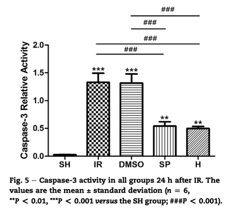 6 測量了caspase-3活性,通過熒光測定法,數(shù)據(jù)來自圖5。研究意義是發(fā)現(xiàn)處理組caspase-3活性降低,表明JNK抑制能阻斷凋亡執(zhí)行階段,減輕細胞死亡。