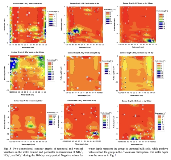 4 底棲擴散通量和N2O排放通量數據:來自圖5和表1。通過Fick定律計算NH4+、NO3-、NO2-和N2O的界面通量。研究意義是量化水深對氮遷移和排放的調控強度,發現根際NO2-通量和N2O排放對水深敏感(>1m時顯著增加),表明深水加劇厭氧過程促進反硝化中間產物積累。