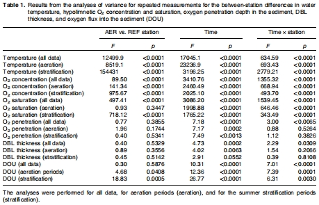 Oxygen flux and penetration depth in the sediments of aerated and non-aerated lake basins