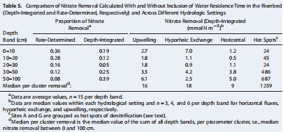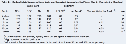 傳輸速率和反應速率之間的相互作用作為控制可滲透的河床沉積物中硝酸鹽衰減