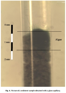 沉積物物理和生物參數(shù):包括光合層厚度δp(通過毛細(xì)管采樣和顯微鏡觀察,約1.1 mm)、孔隙度φ(通過梯度擬合得φ=0.78,見Fig. 6A)、以及微藻群落組成(以硅藻和藍(lán)細(xì)菌為主)。δp數(shù)據(jù)來自Fig. 4的毛細(xì)管樣本圖像,φ數(shù)據(jù)來自Fig. 6A的擬合。研究意義:δp和φ是模型的關(guān)鍵輸入,幫助理解沉積物結(jié)構(gòu)對(duì)DO過程的影響。