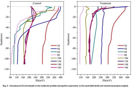 提供了氧化還原環(huán)境演變的直接、高分辨率證據(jù):Unisense微電極能夠以毫米級的精度原位測量沉積物孔隙水的Eh值。圖2清晰地展示了處理組沉積物Eh值隨藻華分解而急劇下降,并在實驗中期(第8天左右)達到最低點。這為“藻華分解創(chuàng)造了強還原環(huán)境”這一核心論斷提供了最直接、最客觀的量化證據(jù)。沒有這種高分辨率測量,很難精確界定還原條件發(fā)展的程度和時空范圍。