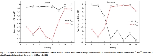 活性磷與鐵、硫相關性變化數(shù)據(jù):分析了不同實驗階段活性磷與鐵、活性磷與硫之間的相關系數(shù)。