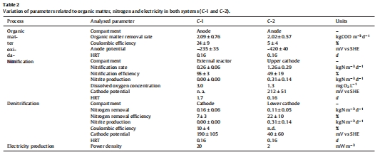 系統(tǒng)性能監(jiān)測(cè):定期測(cè)量進(jìn)出水的化學(xué)需氧量(COD)、氮形態(tài)(銨鹽NH??、亞硝酸鹽NO??、硝酸鹽NO??)濃度,并監(jiān)測(cè)電池電壓、電流、電極電位等電化學(xué)參數(shù)。性能數(shù)據(jù)匯總于表2。
