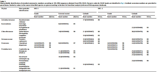 研究意義:直接量化了兩種MFC構(gòu)型處理豬糞便的實(shí)際效果。數(shù)據(jù)顯示兩種構(gòu)型有機(jī)物去除率相當(dāng),但C-1的氮去除效率(7%)低于C-2(22%),且C-1的產(chǎn)電功率(20 mW m?3)遠(yuǎn)高于C-2(2 mW m?3)。這引出了對(duì)微生物學(xué)機(jī)制差異的探究。