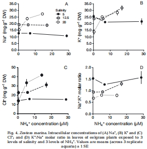 High ammonium availability amplifies the adverse effect of low salinity on eelgrass Zostera marina