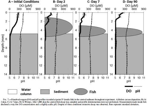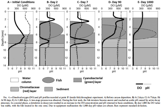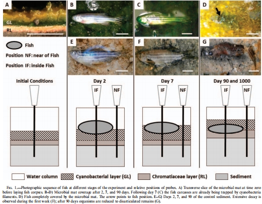 the impact of microbial mats and their microenvironmental conditions in early decay of fish
