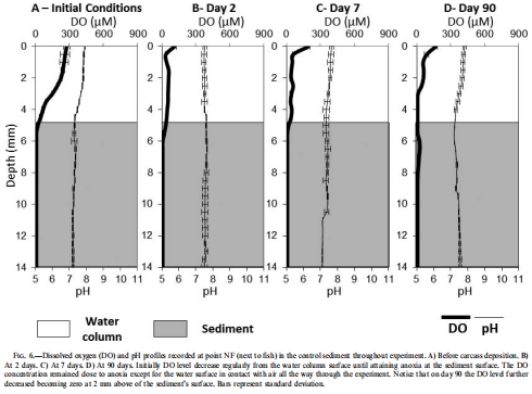 數(shù)據(jù)內(nèi)容:魚(yú)體附近和內(nèi)部始終處于缺氧或極度低氧狀態(tài),pH為中性至微酸性。