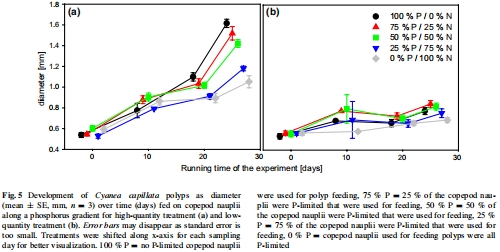 P是關鍵限制因子:磷是限制C. capillata息肉生長和能量儲存的關鍵元素,P限制的食物營養價值低。