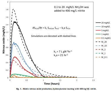 在部分硝化系統(tǒng)中,羥胺與亞硝酸鹽之間的非生物化學(xué)反應(yīng)是N?O的一個重要來源,其速率可能遠(yuǎn)高于生物途徑。