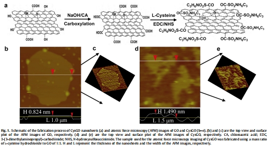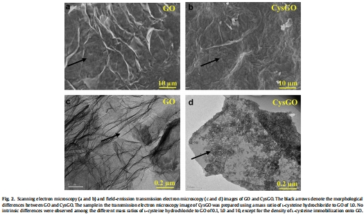 成功合成了L-半胱氨酸修飾的GO(CysGO),其保留了GO的納米片結構。