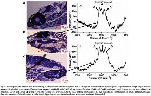 H&E染色切片:GO暴露組眼內部組織細胞核發育被抑制,心包組織出現水腫且結構紊亂;CysGO組則與對照組一樣正常。研究意義:從組織形態學證實CysGO的安全性。數據來自圖5a-c。
