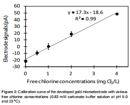 研究意義:證明了金微電極對游離氯具有良好的靈敏度和線性響應,是進行定量測量的基礎。數據來自圖2。