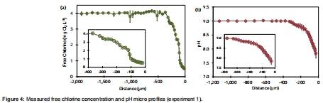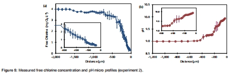 在測量游離氯微剖面時,必須同步測量pH剖面,并利用在不同pH下預先建立的校準曲線進行pH補償,才能獲得準確濃度。