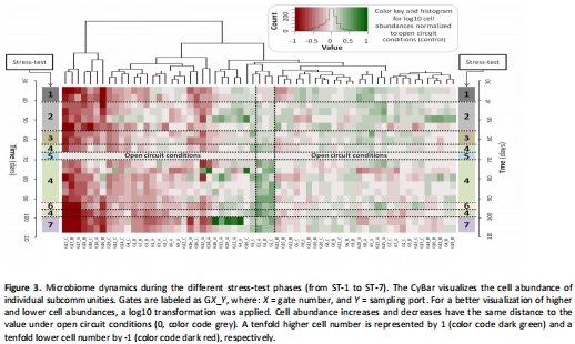 微生物分析:使用流式細胞術(通過DAPI染色和門控分析)監測微生物亞群落的豐度變化,并結合16S rDNA T-RFLP和測序進行系統發育分析。