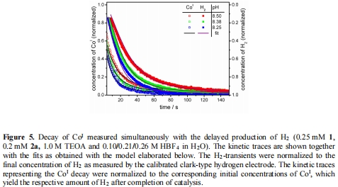 研究意義:提供了氫氣生成的直接證據,并表明H?釋放需CoIIH中間體的積累,支持“CoI → CoIIIH → CoIIH → H?”路徑。數據來自Figure 5(H?與CoI衰變同步測量)。