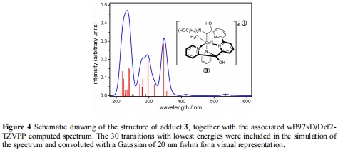 數據內容:計算顯示CoI與TEOA氧化產物(亞胺離子)可逆形成加合物(結構見Figure 4),其光譜在UV區有吸收,與實驗觀察一致。