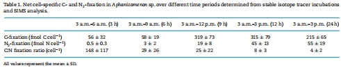 細胞特異性固氮和碳固定速率數據(SIMS):