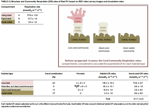 研究意義:直接證明珊瑚礁和海綿地是碳處理的“熱點(diǎn)”,其呼吸率比周?chē)练e物高一個(gè)數(shù)量級(jí),凸顯了它們?cè)谏詈Q筇佳h(huán)中的核心作用。數(shù)據(jù)來(lái)自圖3。