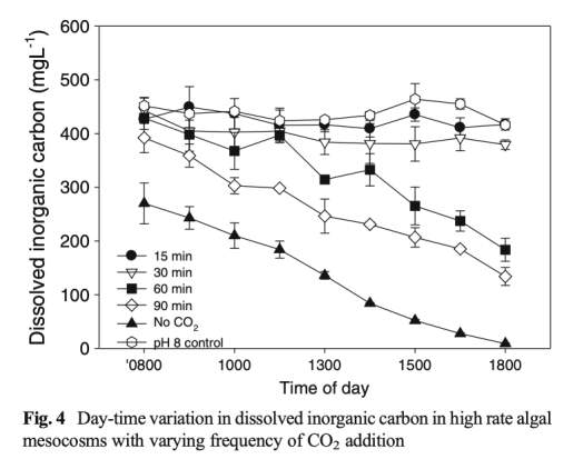 Frequency of CO2 supply affects wastewater microalgal photosynthesis, productivity and nutrient removal efficiency in mesocosms: implications for full-scale high rate algal ponds