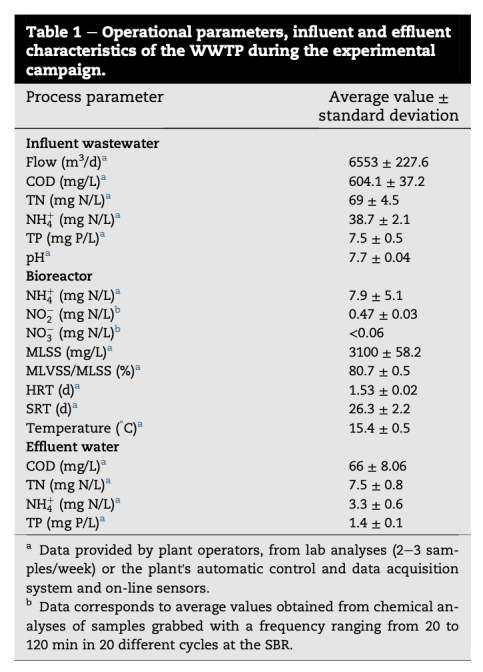 6 測量了進水出水水質參數如COD、總氮、銨氮、總磷等,以及混合液懸浮固體濃度,該數據來自表1。研究意義在于確認污水處理廠的整體性能(COD和總氮去除率超89%),提供背景數據確保排放結果的可比性和可靠性,支撐循環配置比較的合理性。
