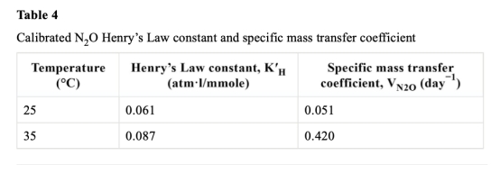 5 通過模擬計算了N2O的亨利常數和傳質系數,數據來自表4和Fig.6。研究意義在于量化溫度對溶解度參數的影響,顯示35°C時傳質系數是25°C的8倍,解釋高溫下N2O更快脫離液相。