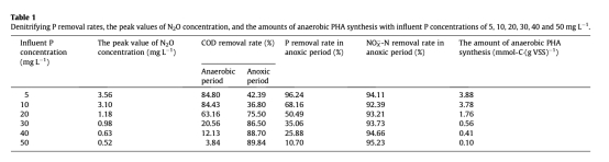 厭氧/缺氧反硝化除磷過程中磷去除和N2O生產:進水磷濃度的長期影響