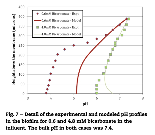 膜曝氣生物反應(yīng)器中堿度和pH對硝化作用的影響:實驗和模型分析
