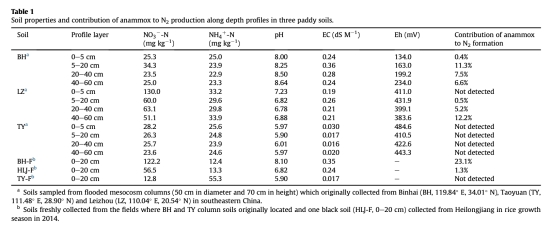 2 土壤理化性質(zhì)數(shù)據(jù),如pH、EC、Eh、NO3-、NH4+濃度,來(lái)自Table 1。研究意義在于揭示環(huán)境驅(qū)動(dòng)因子,如anammox速率與pH和EC顯著相關(guān),表明土壤化學(xué)條件如何影響anammox細(xì)菌的生存和活動(dòng),指導(dǎo)農(nóng)業(yè)管理。