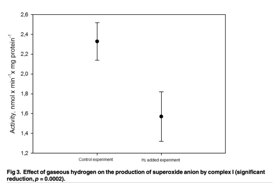 3. 體外超氧陰離子產生率:通過亞線粒體顆粒實驗(來自Fig 3),顯示氫存在下,超氧陰離子產生從2.33±0.19 nmol·min?1·mg?1顯著降低至1.57±0.25 nmol·min?1·mg?1。研究意義在于證明氫能直接減少線粒體ROS生成,可能通過影響復合物I的鐵硫簇,而非僅與羥基自由基直接反應,這深化了對氫抗氧化機制的理解。