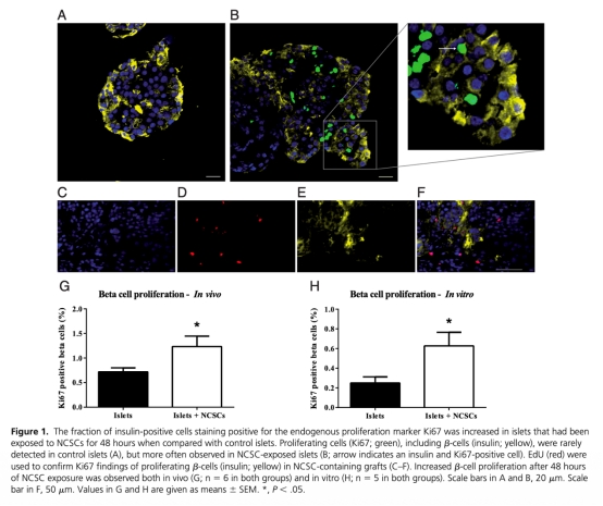 1 NCSCs能刺激人類β細胞增殖,在體外和體內(nèi)均有效。
