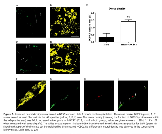 2 NCSCs改善移植人類胰島的神經(jīng)和血管植入,促進功能恢復(fù)。