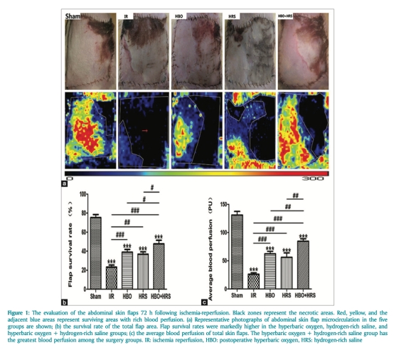 高壓氧預處理和富氫鹽水在改善大鼠皮瓣缺血/再灌注損傷中的協同效應