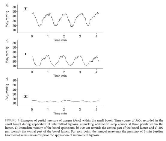 1 氧分壓(PaO2)在腸道內(nèi)的測量:數(shù)據(jù)來自圖1。研究意義是直接證實了間歇性缺氧在腸道近上皮區(qū)域(<200μm)產(chǎn)生了缺氧/再氧合波動,這為微生物群變化提供了環(huán)境基礎,表明OSA的缺氧特征可能通過擴散影響腸道微環(huán)境。