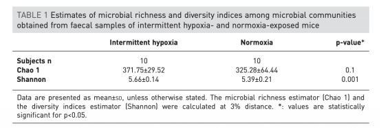 Intermittent hypoxia alters gut microbiota diversity in a mouse model of sleep apnoea