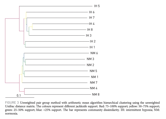 研究思路分為兩個主要部分:首先,通過體內(nèi)實驗使用氧微電極測量小鼠小腸糞便中的氧分壓,以確認間歇性缺氧是否在腸道內(nèi)轉(zhuǎn)化為缺氧/再氧合模式;其次,將小鼠分為間歇性缺氧組和常氧對照組,施加6周的慢性間歇性缺氧干預,然后收集糞便樣本,通過16S rRNA焦磷酸測序和生物信息學分析(如QIIME)來評估微生物群的多樣性和組成變化。整個研究結(jié)合了生理測量和分子生物學方法,以全面評估間歇性缺氧對腸道微生物的影響。
