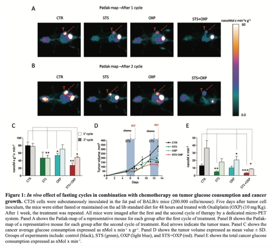摘要部分闡述了短期饑餓(STS)如何通過逆轉瓦伯格效應(即癌細胞偏好有氧糖酵解的現象)來增強化療藥物奧沙利鉑(OXP)對結腸癌細胞的毒性。研究發現,STS在體外和體內模型中能降低糖酵解和谷氨酰胺分解,同時增加氧化磷酸化(OXPHOS),導致氧消耗增加但ATP合成減少,從而引發氧化應激和細胞凋亡。STS與化療聯合使用時,這種效應更加顯著,表明STS能通過代謝重編程使癌細胞對化療更敏感。