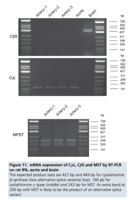 3 酶表達數(shù)據(jù):通過RT-PCR檢測肺動脈中CSE、CBS和MST的mRNA表達。研究意義是確認(rèn)相關(guān)硫化氫合成酶在肺動脈中的存在,為解釋藥理實驗結(jié)果提供基礎(chǔ)。數(shù)據(jù)來自圖11。