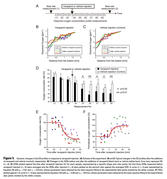 3 DO剖面時間變化數(shù)據(jù):測量verapamil注射后DO剖面的動態(tài)響應,顯示OCR在約10-14分鐘內(nèi)下降至基線59%,POC相應增加。研究意義是證明系統(tǒng)能監(jiān)測實時代謝變化,評估藥物影響,數(shù)據(jù)來自圖5。