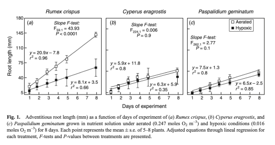 1 根伸長率:通過每日測量根長計算,顯示物種在低氧下根伸長差異。研究意義是評估低氧對根生長的影響,反映物種耐淹性。數據來自圖1。