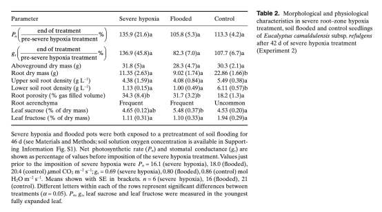 5 嚴(yán)重低氧處理下的響應(yīng):測量水體氧分壓、Pn、gs、生物量等,與常規(guī)淹水和對照比較。研究意義是測試植物對極端缺氧的耐受極限。數(shù)據(jù)來自表2。
